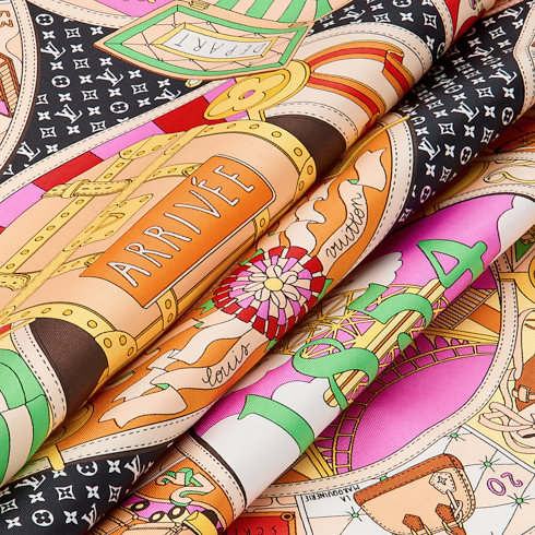 Das LV Journey Carré aus Seide begibt sich auf ein außergewöhnliches Abenteuer in der Welt des Reisens. Sein detailreiches, verspieltes Motiv vereint Bilder von Gepäckstücken, Heißluftballons, Zügen, Schiffen und Flugzeugen mit Würfeln, Wolken und den charakteristischen Monogram- und Damier-Motiven des Hauses Louis Vuitton. Dank eines auffälligen, zeitlosen Designs wird dieses Modell mit Sicherheit zu einem ikonischen Accessoire.