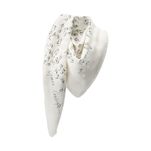Im Rahmen ihrer exklusiven Kollaboration mit dem Haus Louis Vuitton erschuf Stylistin und Modeikone Grace Coddington das Motiv für das LV Mice Monogram Classique Tuch. Das verspielte, auf das Monogram-Jacquardgewebe aus einem hochwertigen Woll-Seidengemisch gedruckte Mäuse-Motiv spiegelt Coddingtons Talent als Illustratorin wider. Ein ebenso angenehm zu tragendes wie auch elegantes Accessoire, welches jedem Look eine kreative Note verleiht.
