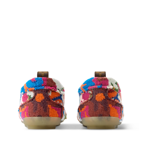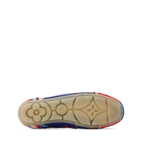 Bei der Frühjahr Sommer 2026 Fashion Show wurde diese Edition der LV Sneakerina Sneaker Ballerina mit einem Tapisserie-Motiv präsentiert. Das Modell vereint Inspirationen aus orientalischen Teppichen sowie französischer Stickkunst des 19. Jahrhunderts. Das florale Muster im Vintage-Look erinnert an die Monogram-Blüten des Hauses Louis Vuitton, während das LV an der Seite aus Kalbsleder gearbeitet ist. Eine geschmeidige Außensohle aus Gummi rundet dieses Design ab.