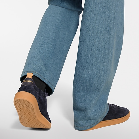 Der LV Soft Sneaker aus geschmeidigem Velours-Kalbsleder ist mit Besätzen aus dem charakteristischen Naturleder des Hauses Louis Vuitton versehen. Neben Schnürsenkeln verfügt er über einen elastischen Fersenbereich, welcher ein müheloses Hineinschlüpfen erlaubt. Seine Sacchetto-Machart sorgt für einen leichten Tragekomfort. An der Seite ziert den Schuh ein LV Initialen Detail, an der Ferse eine von Pharrell Williams entworfene Vuitton Signatur.