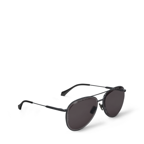 Die ebenso legere wie maskuline LV Super Vision Metal Sonnenbrille kehrt in dieser Saison zurück. Das Modell in der Form einer Pilotenbrille ist inspiriert von der Schnittstelle zwischen Film und Fotografie. Auf die Gläser, welche an Kameraobjektive erinnern, sind der Name, die Adresse sowie das Gründungsjahr des Hauses Louis Vuitton graviert. Dank einer vielseitigen Farbgebung mit schwarzen Gläsern und ruteheniumfarbenem Metall passt dieses Modell zu eleganten wie zu entspannten Looks.