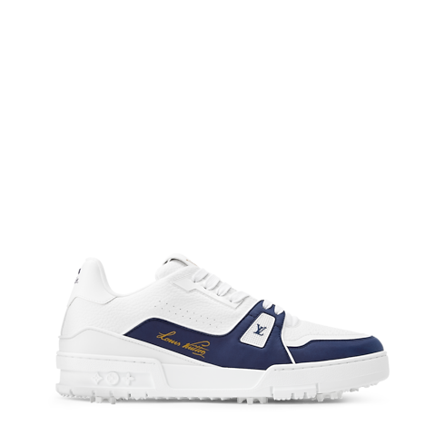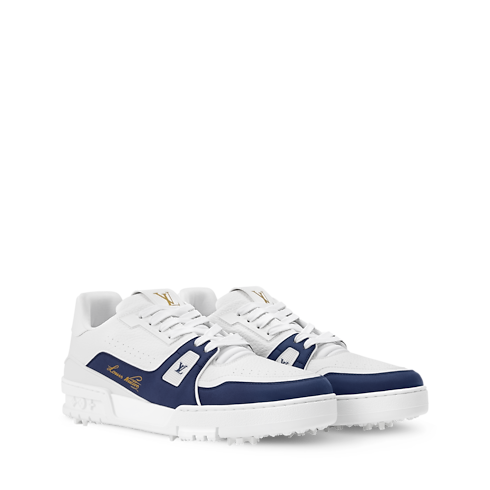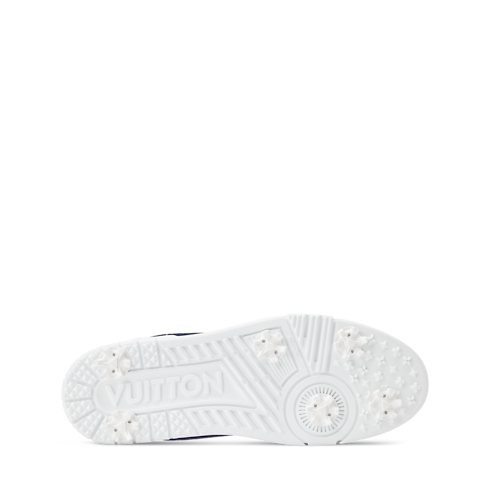 Der ikonische LV Trainer Sneaker wird für den Golfsport neu interpretiert. Sein Schaft ist aus einem wasserabweisenden, lederähnlichen Textil gefertigt und die Außensohle mit abnehmbaren, technischen Spikes versehen. Die sportive, zweifarbige Palette ist auf die Louis Vuitton Golf Kollektion abgestimmt, deren Signatur sich an der Ferse zeigt. Weitere wichtige Details sind LV Initialen aus Gummi und ein goldfarbener Louis Vuitton Schriftzug an der Seite.