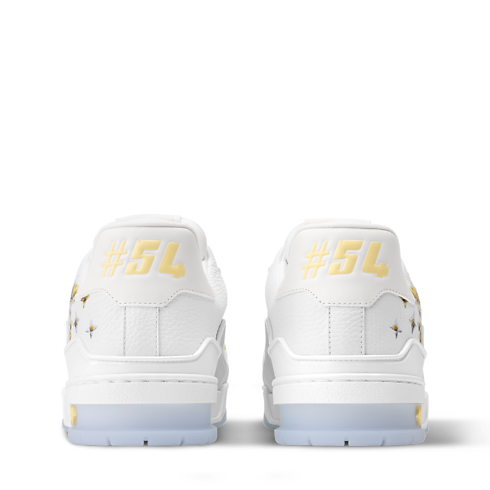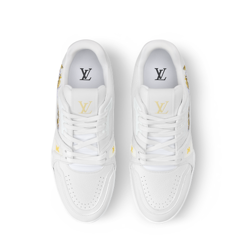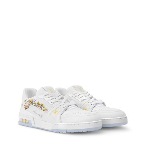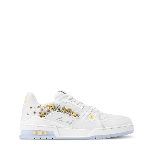 Der LV Trainer Sneaker aus geschmeidigem, genarbtem Kalbsleder ist mit dem floralen Hauptthema der Frühjahr Sommer 2026 Kollektion bestickt. Die drei raffinierten Monogram-Blüten auf der Außensohle des Modells, das von Basketball inspiriert ist, präsentieren sich in einem frischen Pastellton. Auf der Seite ist die Louis Vuitton Signatur aufgestickt.