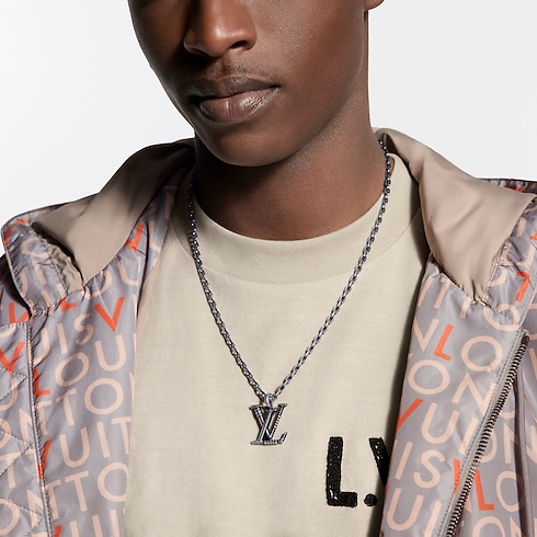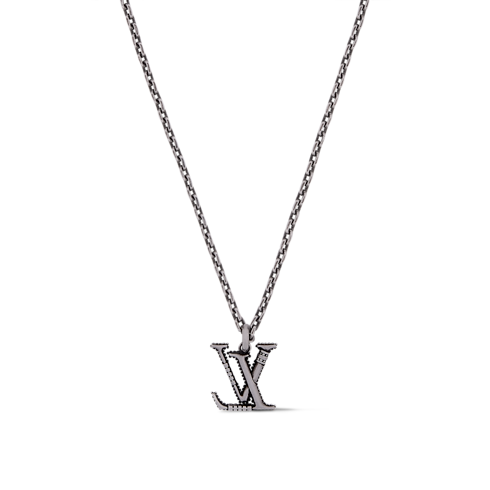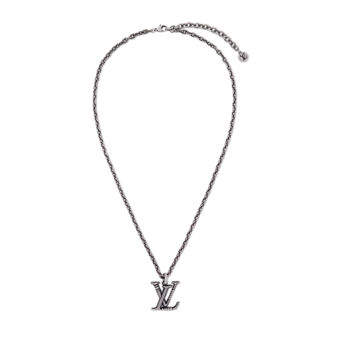 Das LV Whisper Anhänger mit Halskette ist ein ebenso majestätisches wie unverkennbares Schmuckstück. An der gedrehten Kette hängen die neu interpretierten Initialen mit guillochiertem Finish des Hauses Louis Vuitton. Dieser mit einem bandförmigen Design versehene Anhänger würdigt die traditionsreiche indische Handwerkskunst - das Ergebnis ist subtil und zugleich von einer unvergleichlichen Anziehungskraft.