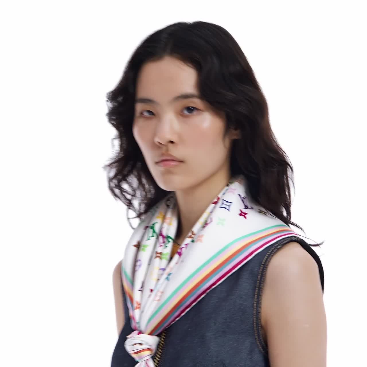Das LV x TM Monogram Multicolor Carré entstammt der kreativen Zusammenarbeit des Hauses Louis Vuitton mit dem bekannten japanischen Künstler Takashi Murakami. Dieses exklusive Accessoire aus glänzender reiner Seide präsentiert sich mit dem von Murakami neu interpretierten ikonischen Monogram-Motiv des Hauses Lous Vuitton und bezaubert mit 33 lebhaften, hochauflösenden Farbtönen auf einem reinweißen Hintergrund. Eine sich farblich abhebende Umrandung umrahmt dieses Accessoire wie ein Kunstwerk.