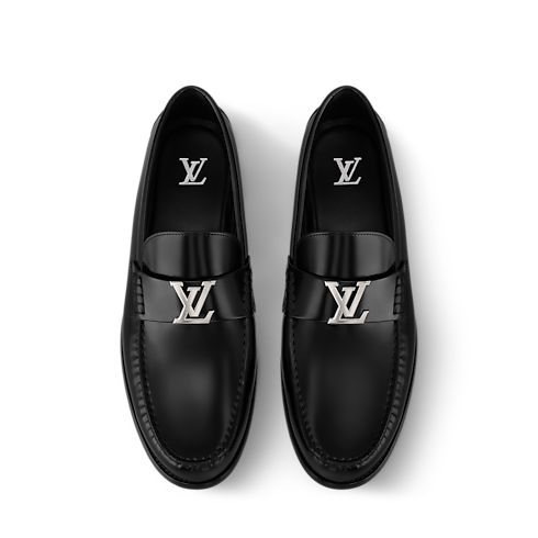 Das elegante Design des Major Loafers wird durch das glänzende Finish aus glänzendem Kalbsleder hervorgehoben. Dieses zeitlos stilvolle und vielseitige Modell zeichnet sich durch die klassische Blake-Machart und das handvernähte Oberleder aus, die beide das Schuhmacherhandwerk des Hauses Louis Vuitton widerspiegeln. Das Oberleder ist mit einem LV Initialen Detail aus silberfarbenem Metall veredelt.