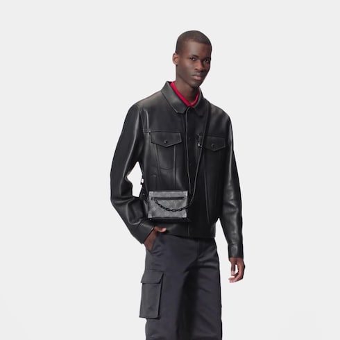 Die von Virgil Abloh für die Frühjahr Sommer 2019 Fashion Show entworfene Mini Soft Trunk Tasche ist in Monogram Eclipse Canvas gefertigt und zeigt sich mit einer mattschwarzen Tragekette aus Kunstharz. Dieses kantige und dennoch elegante Accessoire erinnert an das Erbe des Hauses Louis Vuitton als Kofferhersteller. Das Modell lässt sich über der Schulter oder als Clutch tragen.