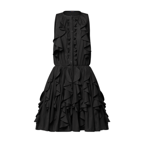 Dieses Kleine Schwarze aus leichtem Baumwoll-Popeline verkörpert einen luftigen, modischen Spirit. An der Brust und rund um den voluminösen Rock wird das Kleid von zarten Rüschen geziert. Eine Bindeband am oberen Ende der geknöpften Vorderseite bildet ein romantisches Finish. Seine taillierte Passform betont die Silhouette. Seitlich lässt sich das Modell durch einen verdeckten Reißverschluss schließen.