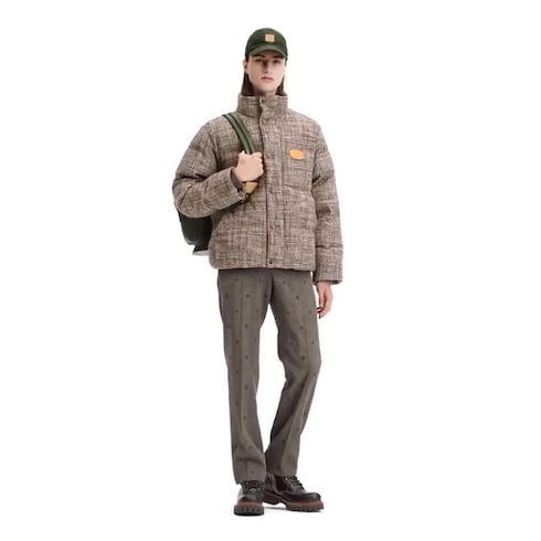 Diese raffinierte Neuinterpretation einer Steppjacke präsentiert sich in stilvollem Glencheck-Tweed, inspiriert von britischer Schneiderkunst. Das angenehm zu tragende Modell ist perfekt für einen winterlichen Spaziergang und verfügt über einen Stehkragen, weiche, gerippte Bündchen sowie eine leichte, warme Füllung aus Ecodown©, die zuverlässig vor Kälte schützt. Das luxuriöse Innenfutter ist mit dem Monogram-Motiv versehen, während natürlich gegerbte Patches aus Leder mit Signature für eine unverkennbare Note sorgen.