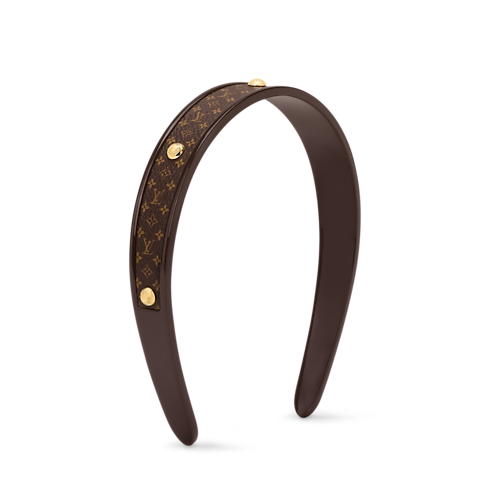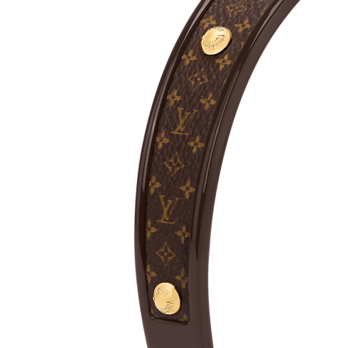 Der ebenso elegante wie stilvolle MNG Resin Haarreif verkörpert eine ideale Kombination aus Raffinesse und Funktionalität. Dieses solide und zugleich flexible Modell aus Kunstharz ist mit dem klassischen Monogram-Motiv verziert. Goldfarbene Nieten, welche an die Nieten auf den historischen Louis Vuitton Koffern erinnern, akzentuieren das Design. Dieses Accessoire mit einer Note des Hauses Louis Vuitton ist die perfekte Wahl, um das Haar an seinem Platz zu halten.