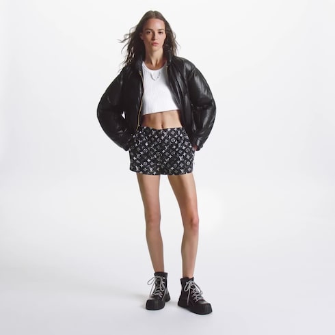 Diese legeren Shorts kombinieren eine sportive Note mit einer saisonalen Louis Vuitton Signatur. Das aus einem technischen Gewebe gefertigte Modell trägt das Monogram-Motiv mit dem Schabloneneffekt dieser Kollektion. Zu den Details gehören ein elastischer Taillenbund, ein Hakenverschluss und zwei Reißverschlusstaschen an den Seiten.