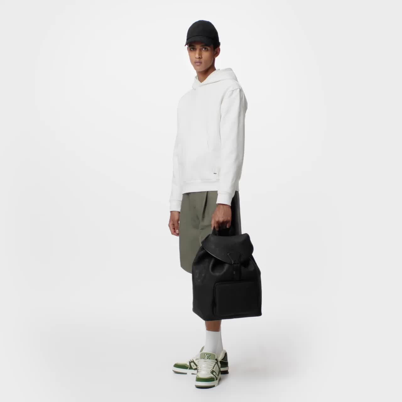 Dieser Montsouris Rucksack in schwarzem Taurillon Leder mit einem geprägten Monogram-Motiv zeigt sich funktional und stilvoll zugleich. Seine Ton in Ton gehaltene Farbgebung samt Elementen aus Metall verleiht ihm eine dezente Eleganz. Für Funktionalität sorgen ein gepolstertes Fach, zwei flache Innenfächer und ein leicht zugängliches Reißverschlussfach an der Vorderseite.