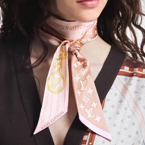 Inspiriert von der ikonischen Neverfull Handtasche, ist das My Neverfull BB Bandeau aus reiner Seide eine Hommage an das Erbe des Hauses Louis Vuitton in der Gepäckfertigung. Das ausdrucksstarke, grafische Motiv erinnert an das gestreifte Innenfutter aus Canvas der Neverfull Handtasche und wird durch eine Illustration des historischen „Articles de Voyage“ Patches akzentuiert. LV Circle und Monogram-Blüte verleihen eine zusätzliche, charakteristische Note.