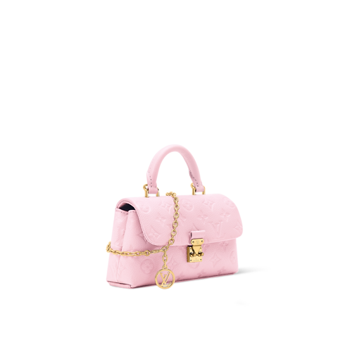 Diese feminine Interpretation der Nano Madeleine Handtasche aus ikonischem Monogram Empreinte Leder zeichnet sich durch die elegante Nuance Confetti Pink des Hauses Louis Vuitton aus. Das Modell verfügt über ein goldfarbenes S-Schloss und eine farblich abgestimmte Kette mit der LV Circle Signatur als Anhänger. In dem vielseitigen Design, das sich auf verschiedene Arten tragen lässt, findet alles Wesentliche Platz.