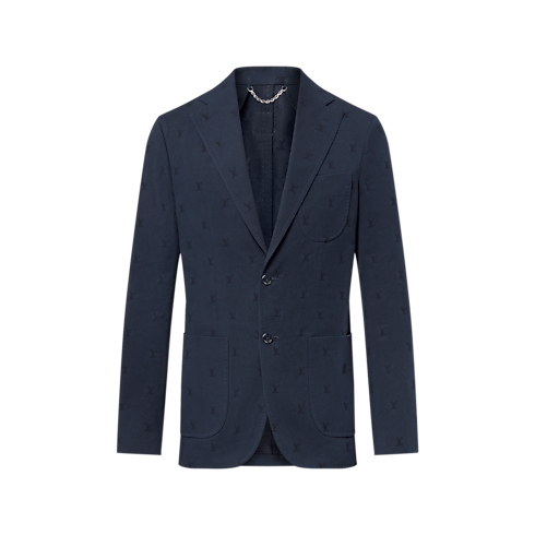 Dieses von der italienischen Maßkonfektion inspirierte, dezent strukturierte Jackett aus Baumwolle zeigt sich leicht und angenehm zu tragen. Das in der Jacquard-Technik gewebte, Ton in Ton gehaltene LV Blason-Motiv prägt das Design. Am Rücken setzt eine geprägte „Marque L. Vuitton Déposée“ Signatur aus Leder einen Akzent. Mit der dazu passenden Hose oder den dazu passenden Shorts lässt sich der Entwurf zu einem modisch-eleganten Anzug kombinieren.
