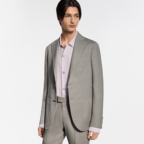 Dieses hellbeige, einreihige Napolitana Jackett aus feiner Schurwolle zeichnet sich durch ein zartes, Ton in Ton gehaltenes Micro Flower Damier-Motiv als Jacquardgewebe sowie perlenartige, charakteristische Knöpfe aus. Das weiche, von italienischer Maßkonfektion inspirierte Modell kreiert eine mühelos elegante Silhouette. In Kombination mit einer schmal geschnittenen Zigarettenhose entsteht ein raffinierter und modischer Anzug, der sich zu geschäftlichen Anlässen, an eleganten, sommerlichen Abenden oder zu Hochzeiten tragen lässt.