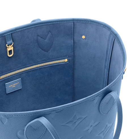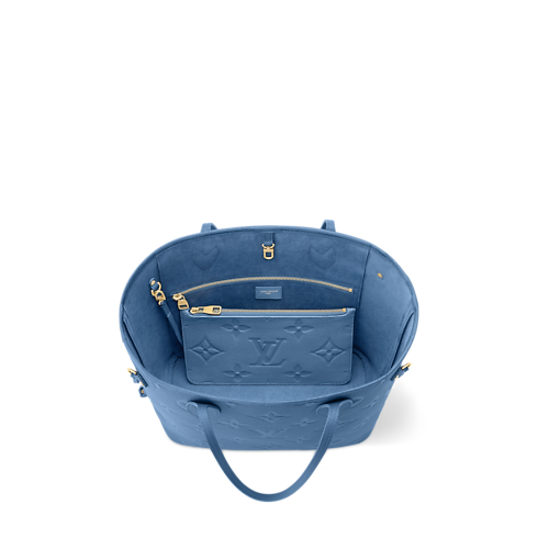 Die Monogram Empreinte Kollektion interpretiert die zeitlose Neverfull MM Tote in einer eleganten, raffinierten Blue Denim-Farbgebung neu. Diese modische Version aus Leder ist mit dem ikonischen Motiv des Hauses Louis Vuitton sowie eleganten, goldfarbenen Beschlägen versehen. Bänder an den Seiten ermöglichen das Definieren der Form. Dank seiner Größe bietet dieses Modell ausreichend Platz, um alles Wesentliche für jeden Tag zu verstauen - einschließlich eines Laptops.