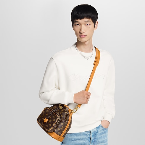 Die in Monogram Canvas mit Besätzen aus patiniertem Leder gefertigte Noé Cargo verweist auf die Noé Beuteltasche, welche das Haus Louis Vuitton im Jahr 1932 als Tasche zum Transport von Champagnerflaschen vorstellte. Ihre aufwendig gearbeiteten Details, darunter ein geräumiges Fach an der Vorderseite, sind ebenso eine Hommage an das Erbe der Maison wie eine Antwort auf die Bedürfnisse der Moderne. Ein Griff an der Oberseite und ein Schulterriemen - beide abnehmbar - eröffnen verschiedene Tragemöglichkeiten.