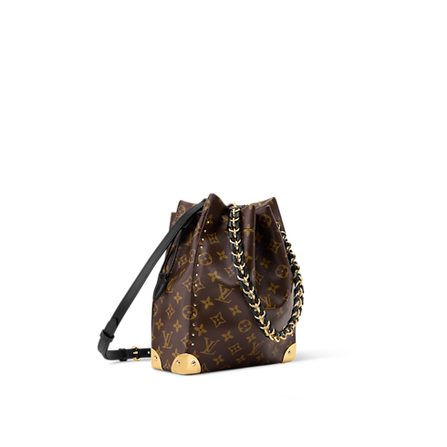 Die Noé Trunk ist eine elegante Beuteltasche in einem ebenso zeitlosen wie modischen Design. Diese Version in dem charakteristischen Monogram Canvas ist mit stilvollen, goldfarbenen Beschlägen wie einer abnehmbaren, geflochtenen Kette versehen. Die von Koffern inspirierten Ecken verweisen auf das ikonische Erbe des Reisens des Hauses Louis Vuitton. Dank eines Zugband-Verschlusses lassen sich Wertgegenstände sicher verwahren.