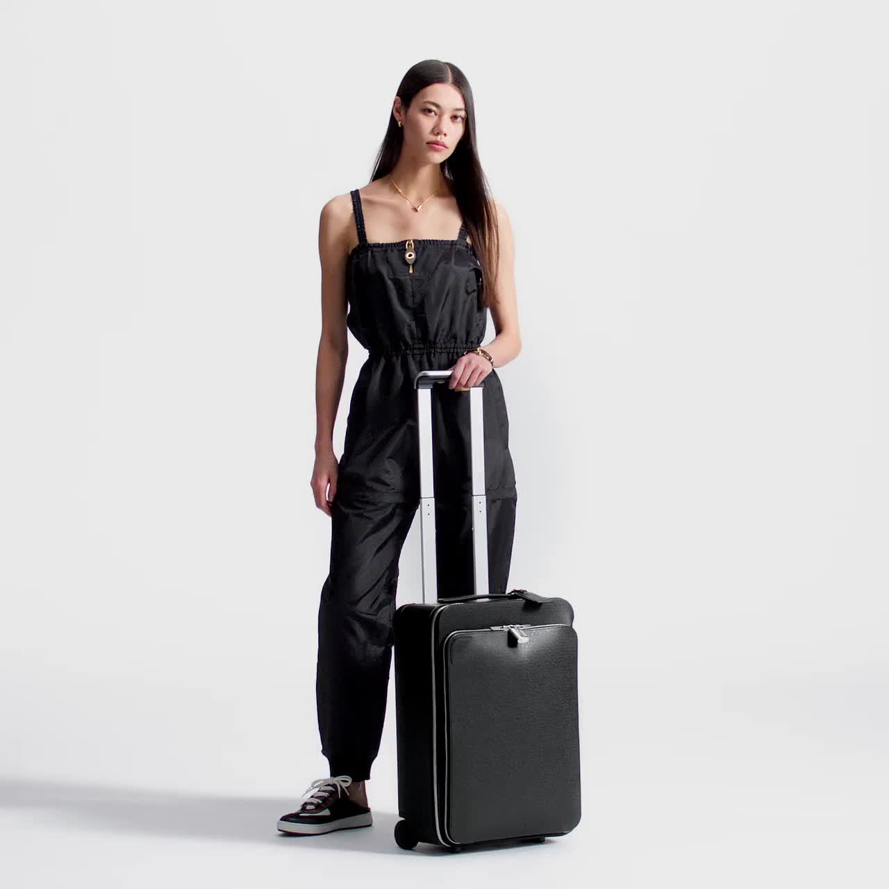 Der von Stardesigner Marc Newson entworfene Pégase Rollkoffer bietet dank seines besonders schmalen Teleskopgriffs ein außergewöhnlich hohes Fassungsvermögen. Dieses in dem unverkennbaren Taïga Kalbsleder des Hauses Louis Vuitton gefertigte Modell besitzt verstärkte Ecken im Stil klassischer Reisekoffer, welche auf dezente Weise für eine charakteristische Note sorgen. Das leicht zugängliche Fach an der Vorderseite verfügt über gepolsterte Taschen für Laptop, Tablet, Smartphone und mehr. Eine perfekte Wahl für Geschäftsreisen.