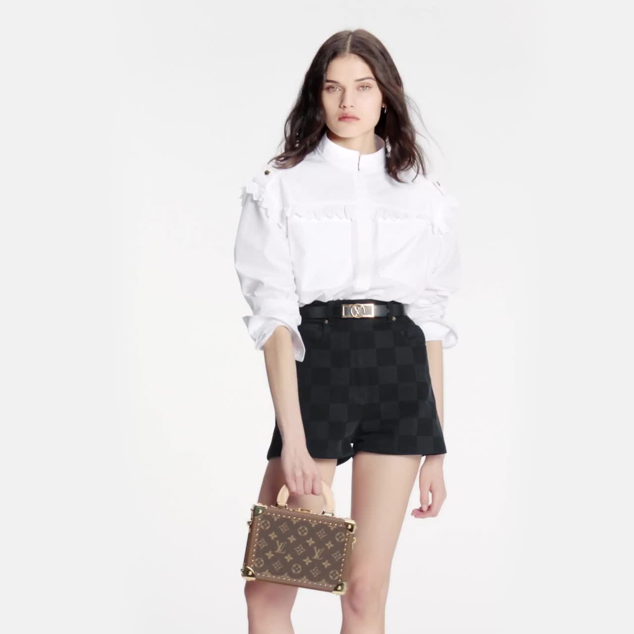 Für die Cruise 2022 Kollektion kreiert Nicolas Ghesquière mit dem Petite Valise einen neuen tragbaren Hartschalenkoffer. Als eine Miniatur-Version der ikonischen Koffer des Hauses Louis Vuitton ist dieses Modell mit einem Griff an der Oberseite ein Must-have der Damenkollektion.