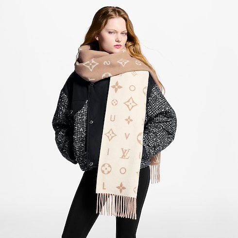 Ein Louis Vuitton Klassiker wird auf raffinierte, zeitgemäße Weise neu interpretiert: Der ebenso elegante wie auch funktionale Reykavik Cloud Schal aus weichem Kaschmir präsentiert sich mit den ikonischen Monogram-Blüten und LV Initialen. Eingestreute „Louis Vuitton“ Buchstaben verweisen zusätzlich auf die Maison — eine originelle Signatur. Dank des längeren Designs kann dieses Modell mehrmals um den Hals gelegt oder als modische Balaklava getragen werden.