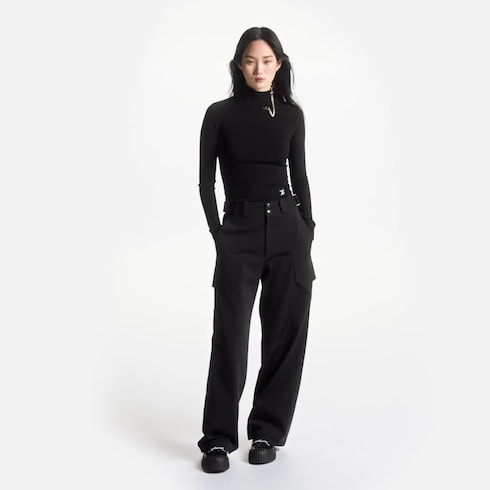 Ein Basic für die Garderobe mit ausdrucksstarker Note: Diesen Pullover mit Rollkragen ziert ein freiliegender, goldfarbener Reißverschluss im asymmetrischen Design. Er wird mithilfe einer passenden Schieberkette bedient, die sich auf elegante Weise um den Kragen legt. Das Modell ist aus seidigem Strick mit Stretch in einer komfortablen, eng anliegenden Passform gefertigt. Sich farblich abhebende LV Initialen verleihen dem Design eine unverkennbare Signatur.