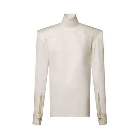Grafische Linien verleihen dieser Bluse aus der Kollektion vom Laufsteg eine stilvolle Note. Das Modell aus einem fließend fallenden Seiden-Twill in einer gerade geschnittenen Passform besticht durch betonte Schultern und einen hochgeschlossenen Kragen. Dank einer großzügigen Aussparung zwischen den Schultern kommt der Rücken vollständig zur Geltung. Manschettenknöpfe mit einer Monogram-Blüte setzen einen eleganten Akzent des Hauses Louis Vuitton und runden den Look ab.