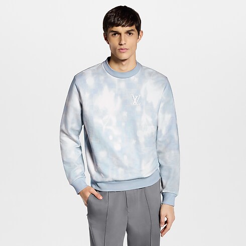 Dieser hellblaue Pullover aus Baumwolle mit Rundhalsausschnitt verkörpert die Essenz des Frühlings. Er ist mit dem LV Flowers X-Ray-Motiv dieser Kollektion mit Blüten im Bleach-Effekt und dezenten Monogram-Signaturen bedruckt. Eine LV-Stickerei auf der Brust sowie ein Patch aus Leder mit Signatur auf der Rückseite verleihen diesem grafischen Modell ein raffiniertes Finish, das legeren Looks einen modischen Akzent verleiht.
