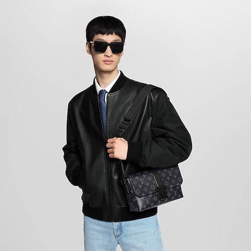 Die S-Cape Messenger Tasche in Monogram Eclipse Canvas zeigt das ikonische Monogram-Motiv in Grau und Schwarz. Als Inspiration für dieses einfarbige Design diente ein schwarzer Koffer aus Leder aus den Archiven des Hauses Louis Vuitton. Die Neuinterpretation des S-Schlosses — ein Hauptmerkmal dieses Modells — bietet neben einem raffinierten Look zusätzliche Sicherheit für den Tascheninhalt.