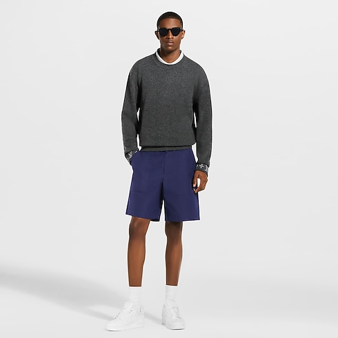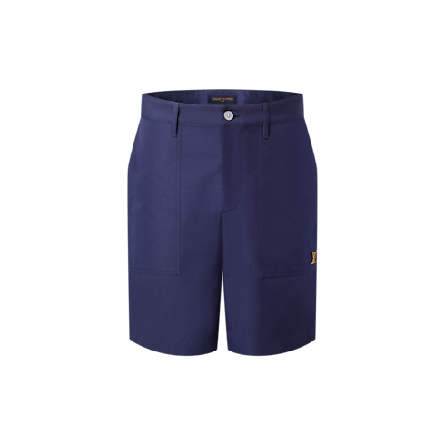 Diese zeitlosen, dunkelblauen Shorts im Carpenter-Stil sind aus einem Baumwoll-Woll-Seidengemisch gefertigt. Ein von natürlich gegerbtem Rindsleder inspirierter Signatur-Patch ziert die linke der beiden geräumigen Taschen im Workwear-Look. Das klassische Modell lässt sich an sommerlichen Tagen mühelos kombinieren und bildet zusammen mit einer passenden Jacke ein elegantes Ensemble.