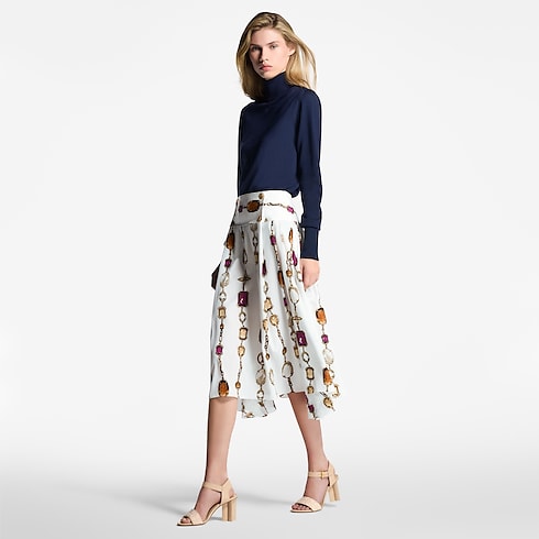 Die Silhouette Sandale überzeugt durch eine raffinierte Kombination von Kalbsleder und Monogram Jacquard, welcher zusätzlich mit einem eindrucksvollen geometrischen Motiv bestickt ist. Dieses sommerliche Modell verfügt über einen hohen Absatz in Form einer Monogram-Blüte — ein für die Silhouette Linie charakteristisches Detail. Abgerundet wird der Look durch einen Knöchelriemen mit übergroßen Ösen und eine goldfarbene Schließe mit Gravur.