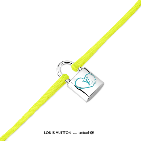 In Zusammenarbeit mit dem House Ambassador Felix entstand diese limitierte Edition des Silver Lockit, die traditionsreiche Inspirationen mit einer motivierenden Botschaft des K-Pop-Superstars selbst vereint. Gefertigt aus vollständig recycelten Materialien, besticht sie durch eine neongelbe Textil-Schnur und einen Anhänger aus Sterlingsilber, der dem ikonischen Hängeschloss nachempfunden ist, das Georges-Louis Vuitton 1901 zum Schutz des Inhalts der Steamer Tasche entwarf. Eine LV Initials Signatur ist fein in ein von Felix gestaltetes Herz graviert, das mit dem Wort „Dream“ versehen und durch blauen Lack mit einem frischen, zeitgemäßen Akzent belebt wird. Dieses Schmuckstück, das sowohl einzeln als auch in Kombination getragen werden kann, besitzt eine tiefere symbolische Bedeutung: Mit jedem Kauf werden Kinder in Not durch eine Spende von 100 US-Dollar an UNICEF unterstützt - eine Herzensangelegenheit für Felix und das Haus Louis Vuitton.