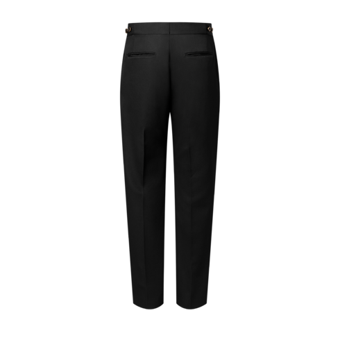 Diese zeitlose schwarze Smoking Hose aus einem schimmernden Woll-Seidengemisch ist für elegante Anlässe unverzichtbar. Sie präsentiert sich mit Einsätzen aus Seide an den Außenseiten der Beine. Ihren verstellbaren Taillenbund schmücken eine mit Kristall-Strass besetzte Monogram-Blüte sowie LV Knöpfe. Mit dem dazu passenden Jackett und der jeweiligen Weste lässt sich die Hose zu einem raffinierten Look kombinieren.