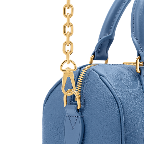 Diese Version der ikonischen Speedy 20 mit Schulterriemen zeigt sich in einer eleganten Blue Jean-Nuance. Die ebenso modische wie stilvolle Tasche in dem charakteristischen Monogram Empreinte Leder wird durch ein goldfarbenes Hängeschloss mit passenden Schlüsseln akzentuiert - eine Hommage an das ikonische Erbe des Reisens des Hauses Louis Vuitton. Das Modell bietet Platz, um alles Wesentliche für jeden Tag zu verstauen, und kann diagonal am Körper, über der Schulter oder in der Hand getragen werden.
