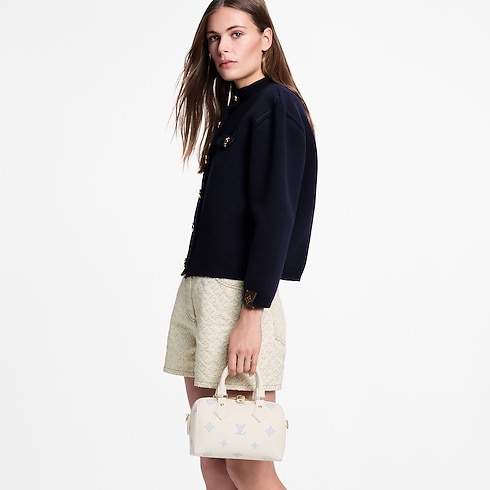 Die Speedy Bandoulière 20 präsentiert sich in dieser Saison in einer eleganten, zweifarbigen Palette neu interpretiert, die sich mit den meisten Outfits kombinieren lässt. Das Modell in charakteristischem Monogram Empreinte Leder ist mit einem dekorativen Anhänger und einem Louis Vuitton Adressanhänger geschmückt – zu Ehren des historischen Reisegepäcks des Hauses Louis Vuitton. Dank ihrer Maße fasst sie alles Wesentliche. Die vielseitige Handtasche kann diagonal am Körper, über der Schulter oder in der Hand getragen werden.