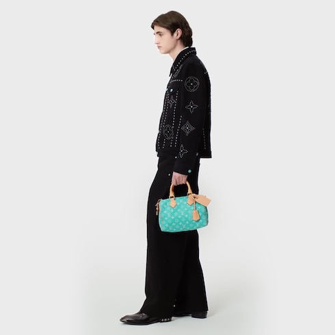 Diese Speedy P9 25 Tasche mit Schulterriemen ist aus besonders geschmeidigem Kalbsleder gearbeitet und setzt mit ihrem von Edelsteinen inspirierten Farbton einen leuchtenden Akzent. Im Inneren dieses auf der „From Paris to Virginia“ Fashion Show von Pharrell Williams für die Herbst Winter 2024 Kollektion präsentierten Modells befindet sich eine abnehmbare, kleine Tasche aus Leder. Gemäß des für die Saison charakteristischen Themas zeigen die Halterungen der Tragegriffe dezent eingravierte Pferde-Motive.