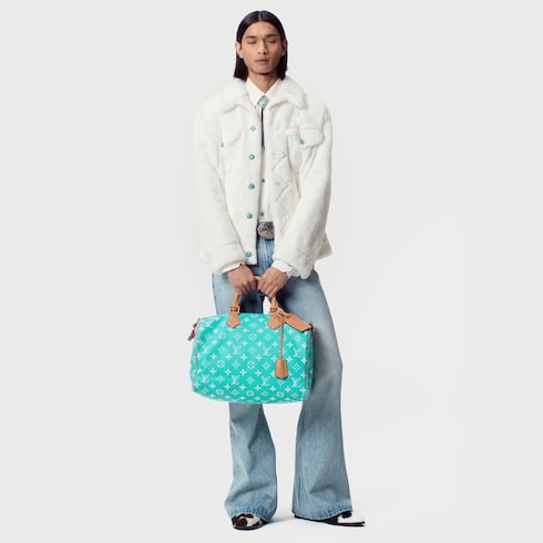 Die Speedy P9 40 Tasche mit Schulterriemen ist aus besonders geschmeidigem Kalbsleder gearbeitet, dessen auffällige Färbung von Edelsteinen inspiriert ist. Diese weniger strukturierte Variante der ikonischen Speedy Tasche ist ausgesprochen angenehm zu tragen. Im Zeichen der „From Paris to Virginia“ Fashion Show von Pharrell Williams für die Herbst Winter 2024 Kollektion zeigen die Halterungen der Tragegriffe dezente Pferde-Symbole als Prägung.