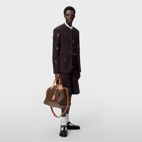 Bei dieser Speedy P9 40 mit Schulterriemen und in Monogram Leder hat Men's Artistic Director Pharrell Williams ein von Natur aus geschmeidiges, genarbtes Kalbsleder verwendet, welches sich besonders weich anfühlt. Das Monogram-Motiv ist mithilfe einer exklusiven Siebdrucktechnik auf das Leder gedruckt. Dadurch wird der leicht verschwommene Effekt wiedergegeben, der entsteht, wenn das Monogram auf Canvas gedruckt wird. Diese Tasche ist vollständig mit außergewöhnlich hochwertigem Lammleder gefüttert.