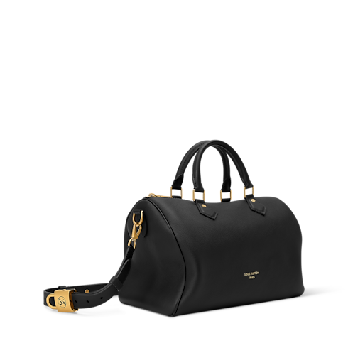 Der perfekte Reisebegleiter: Diese Low Key Version der Speedy Soft 30 ist aus geschmeidigem Kalbsleder in einer zeitlosen Nuance gefertigt. Verziert mit einem charakteristischen LV Hängeschloss in patiniertem, goldfarbenem Finish, besticht dieses elegante Design durch einen abnehmbaren Schulterriemen für vielfältige Tragemöglichkeiten. Ihre Maße sind ideal für alles Wesentliche. Im Inneren befindet sich ein flaches Fach.