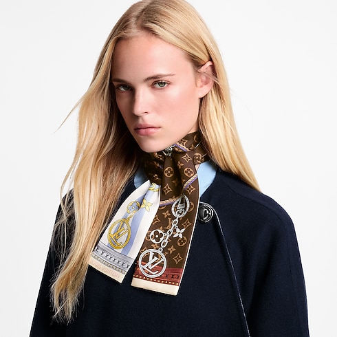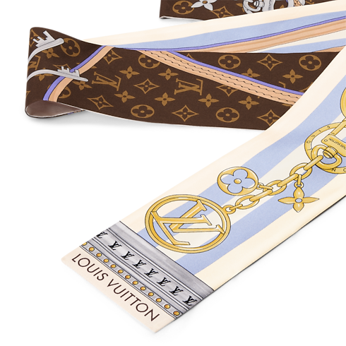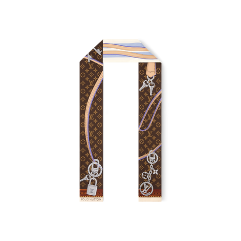 Das auffallende Design des Strap And Trunk Bandeau wurde vom Aussehen der historischen Monogram-Gepäckstücke aus dem 19. Jahrhundert inspiriert. Auf reiner Seide gedruckt, verfügt es über einen Riemen aus Leder im Koffer-Stil sowie eine Kette, die mit ikonischen Louis Vuitton Anhängern verziert ist. Ein elegantes, unverkennbares Accessoire und eine Hommage an das Erbe des Hauses Louis Vuitton in der Kunst des Reisens.