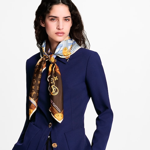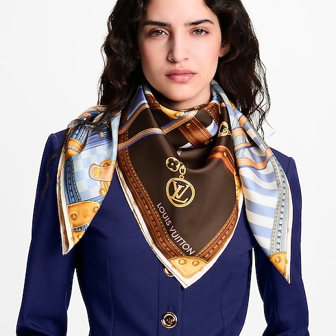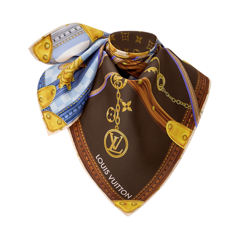 Das künstlerische Design des Strap And Trunk Carrés ist von klassischen Kreationen aus den Archiven des Hauses Louis Vuitton inspiriert. Auf feiner Seide gedruckt, zeigt es vier historische, mit Canvas bezogene Koffer. Diese sind mit charakteristischen Motiven wie dem Monogram- und Damier-Motiv verziert und werden von Riemen aus Leder und Hängeschlössern überlagert. Ein stilvolles, vielseitiges Accessoire und eine elegante Hommage an The Spirit of Travel.