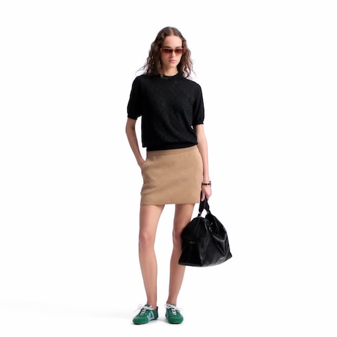 Dieses mühelos elegante Stricktop aus einem hochwertigen Wollgemisch zeigt das charakteristische Mahina Mongram-Motiv der Flight Mode Kollektion in Form dezenter Aussparungen. Modisch gerippte Säume ergänzen das Design. Für eine feminine Note sorgen kurze, voluminöse Ballonärmel, die zudem einen Kontrast zu der figurnah geschnittenen Passform setzen.