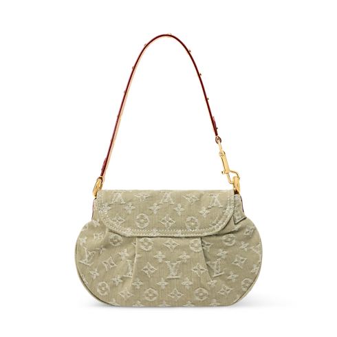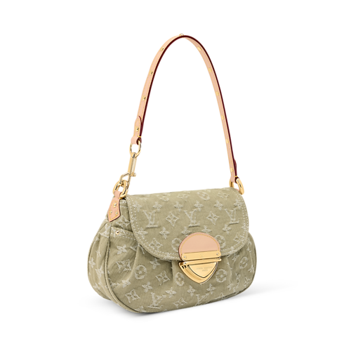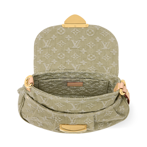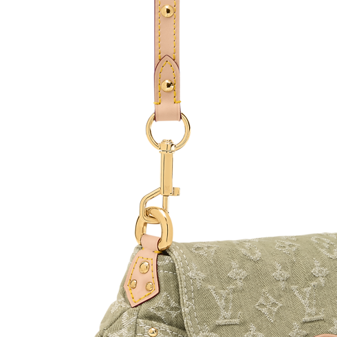 Diese modische Version der Sunset-Handtasche aus Denim in leuchtendem Khaki ist Teil der Denim Rendez-Vous Kollektion. Das Modell zeichnet sich durch goldfarbene Beschläge, welche die vielseitige Farbpalette betonen, und einen unverkennbaren Verschluss aus. Sie kann diagonal am Körper, über der Schulter und in der Hand getragen werden. Das Innere verfügt über ein flaches Fach sowie ausreichend Platz, um alles Wesentliche zu verwahren.