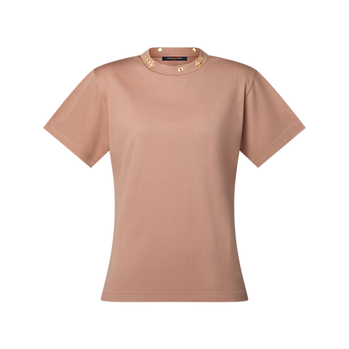 Dieses unverzichtbare T-Shirt erhält eine rebellische Neuinterpretation durch Metall-Nieten in Form von Monogram-Blüten und Ösen rund um den Rundhalsausschnitt. Dies sorgt für eine elegante, charakteristische Note. Das Modell ist aus weichem Baumwolljersey in einer vielseitigen Saisonfarbe und mit leichtem Tapered Fit gefertigt. So bietet es legeren Komfort für stilvolle Alltagslooks.