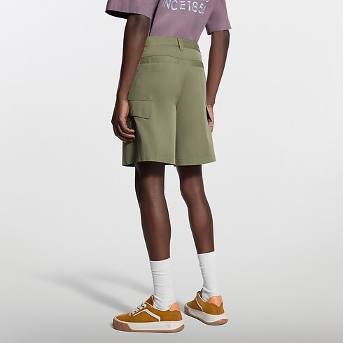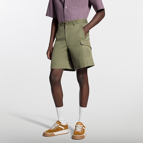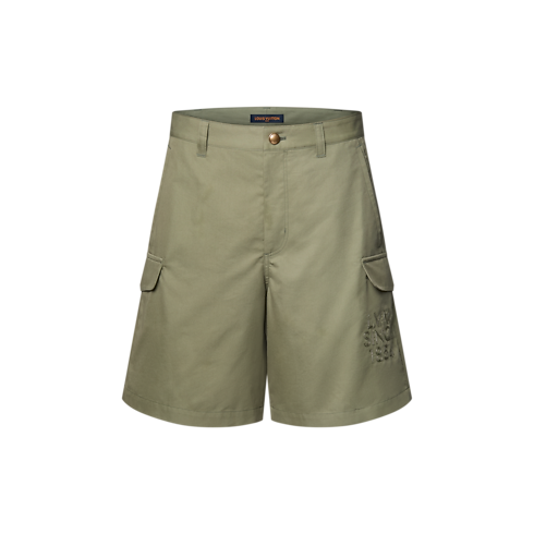 Diese zeitlosen Cargo-Shorts in grünem Khaki vereinen Eleganz mit Funktionalität und sind von dem schicken Wander-Thema dieser Saison inspiriert. Sie sind aus einem technischen Gewebe aus einem Baumwollgemisch gefertigt und verfügen über funktionale Cargo-Taschen an den Seiten, während eine Ton in Ton gehaltene, gestickte L.V.M. Legacy-Signatur das linke Bein ziert. Dieses vielseitige Modell vervollständigt eine Vielzahl an Looks für jeden Tag.