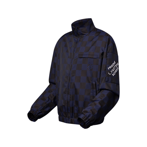 Ein blau auf schwarz gedrucktes, durchgängiges grafisches Damier Pop-Motiv von der Frühjahr Sommer 2024 Fashion Show zeichnet diesen leichten Blouson aus technischem Gewebe aus. Die Inspiration zu diesem für Wochenendtrips perfekten Modell stammt von dem Dandy-Thema der Kollektion. Es präsentiert sich mit einer edlen „Marque L. Vuitton déposée“ Signatur aus aufgesticktem Kristall-Strass am linken Ärmel und ist mit der dazu passenden Hose zu einem eleganten Gesamtlook kombinierbar.