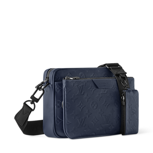 Die Trio Messenger Tasche ist in geschmeidigem Monogram Shadow Kalbsleder gearbeitet und mit der Schlaufe in Monogram Shadow Leder signiert. Sie verfügt über ein Hauptfach, ein abnehmbares Reißverschlussfach auf der Vorderseite und eine abnehmbare Geldbörse für Münzen am Schulterriemen. Der verstellbare Schulterriemen sorgt für einen bequemen, individuell anpassbaren Tragekomfort.