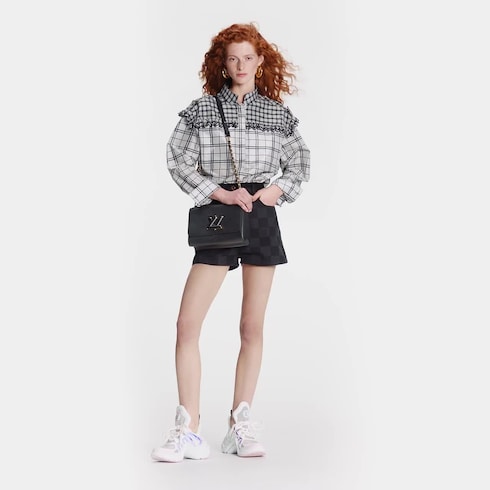 Die Twist MM Chain Tasche in dem ikonischen Epi Leder des Hauses Louis Vuitton präsentiert sich mit dem mittlerweile ikonischen Drehverschluss mit LV Signatur. Die Twist MM Tasche wird in einem einfarbigen Design von Schwarz auf Schwarz neu interpretiert. Das Modell in schwarzem Epi Leder besitzt einen matten, Ton in Ton lackierten Drehverschluss mit LV Signatur. In die Glieder der Schulterkette aus Metall ist weiches Leder eingeflochten, welches für eine unerwartet elegante Note sorgt. Dank eines verstellbaren Schulterpolsters aus Leder lässt sich dieses Accessoire überaus angenehm tragen.