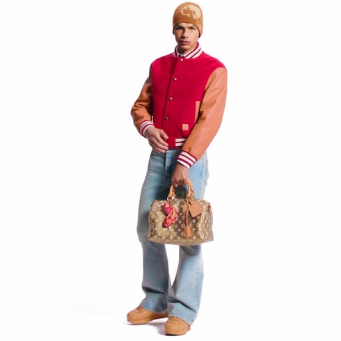 Mit dieser zeitlosen roten Varsity Jacke von der Herbst Winter 2025 Fashion Show präsentiert sich ein ikonisches Modell auf eine elegante Weise neu. Ihr Korpus aus leuchtend roter Wolle hebt sich von den Ärmeln aus naturbelassenem Kalbsleder ab, das an die historischen Louis Vuitton Koffer aus natürlich gegerbtem Rindsleder erinnert. Ein Innenfutter mit einem durchgängigen Monogram-Motiv und ein Patch mit der Marque L. Vuitton Déposée Signatur runden das Modell ab.